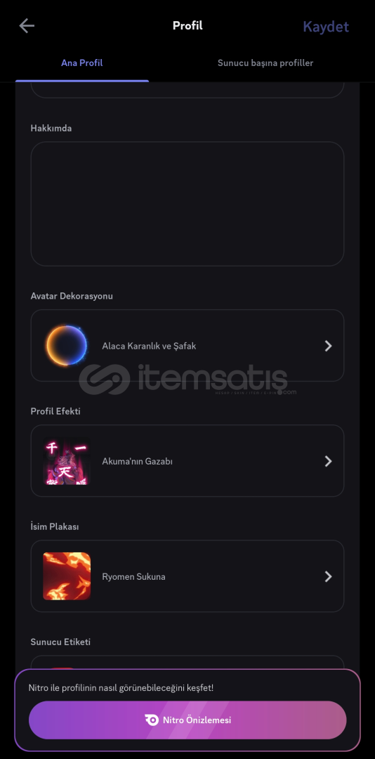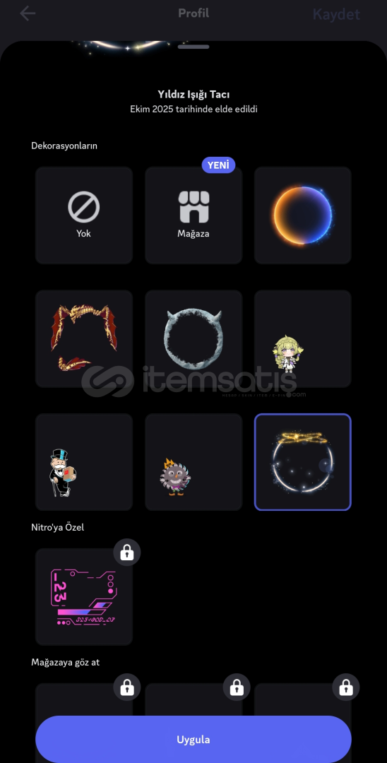 Hesapta dekorasyonlar vardır çerçeve,isim plakasi ,ve profil efekti,+ Aktif geliştirici rozeti