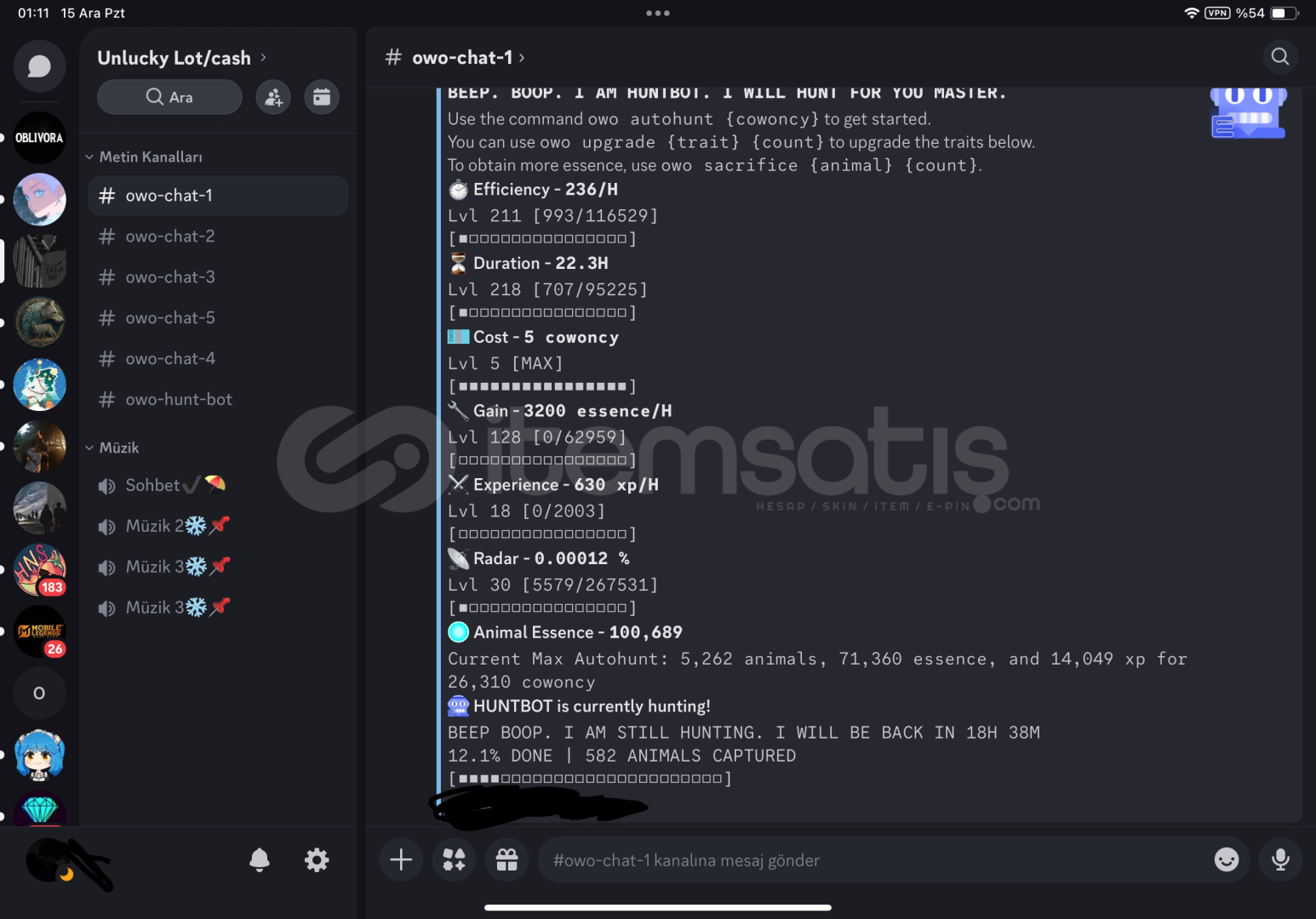 Hesabın maili değişilecektir. Herhangı bır sorun yoktur herhangı bır owo sunucusundan banlı değildir. Temızdır sahıbı benım alıcısına sımdıden hayırlı uğurlu olsun. :)) detay ıcın vs. Yazabılırsınız.içinde 5200 hayvanlı huntbot bulunmaktadır.