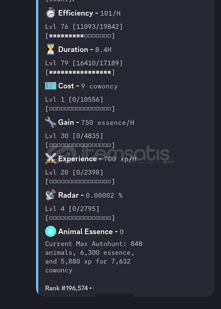 Selam size güzel bir hesap la geldimHesap özeti 30 level olmak üzere dirZo 1mEnvanter gayet güzel 34 sayfa silah vardır Hunt bot şu şekilde efficiency 76 duration 79Gain 30850 hayvan avlıyor Sormak istediniz birşey varsa sormanız yeter
