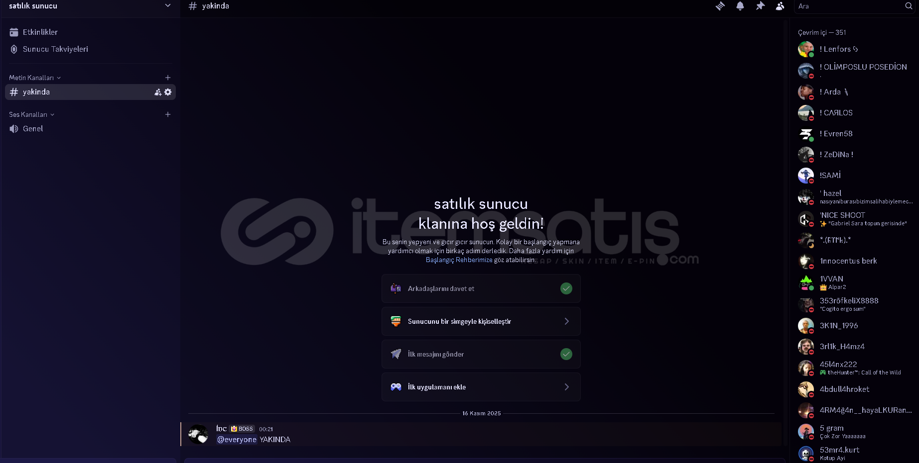 350 Aktif Üyeli Discord Sunucusu