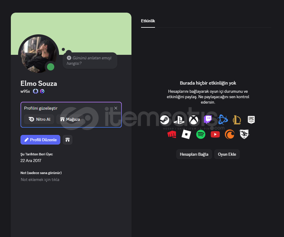 -> Hesapta Promosyon Nitro Kullanabilirsiniz Daha Önce Hesapta Nitro Alınmamıştır.