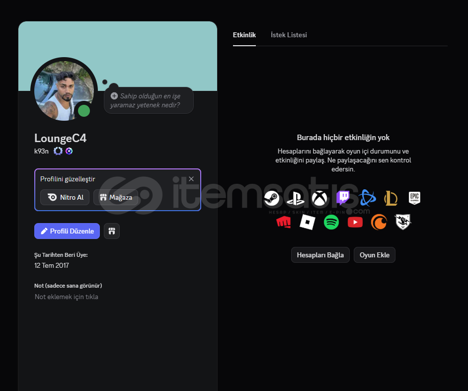 -> Hesapta Promosyon Nitro Kullanabilirsiniz Daha Önce Hesapta Nitro Alınmamıştır.