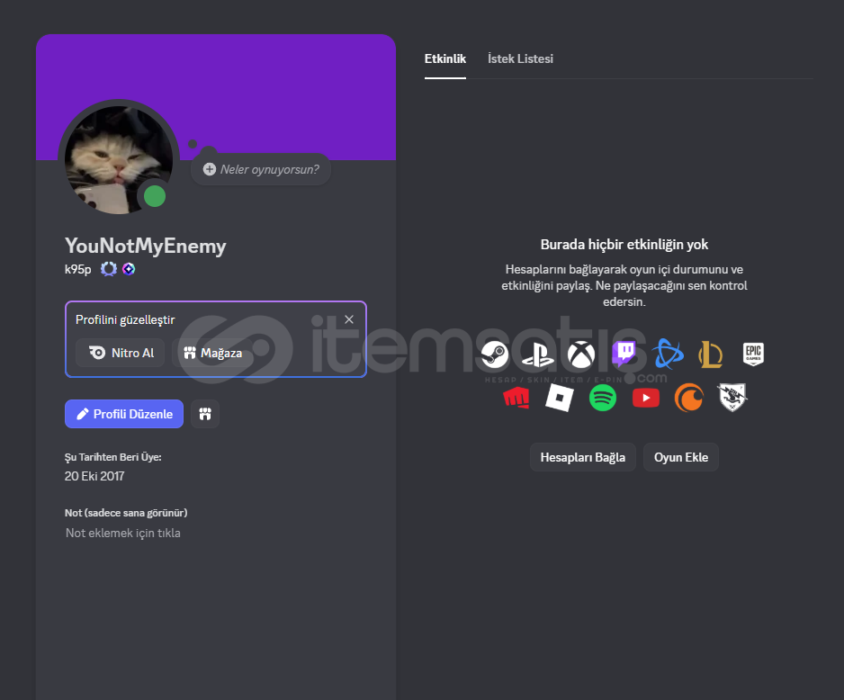 -> Hesapta Promosyon Nitro Kullanabilirsiniz Daha Önce Hesapta Nitro Alınmamıştır.