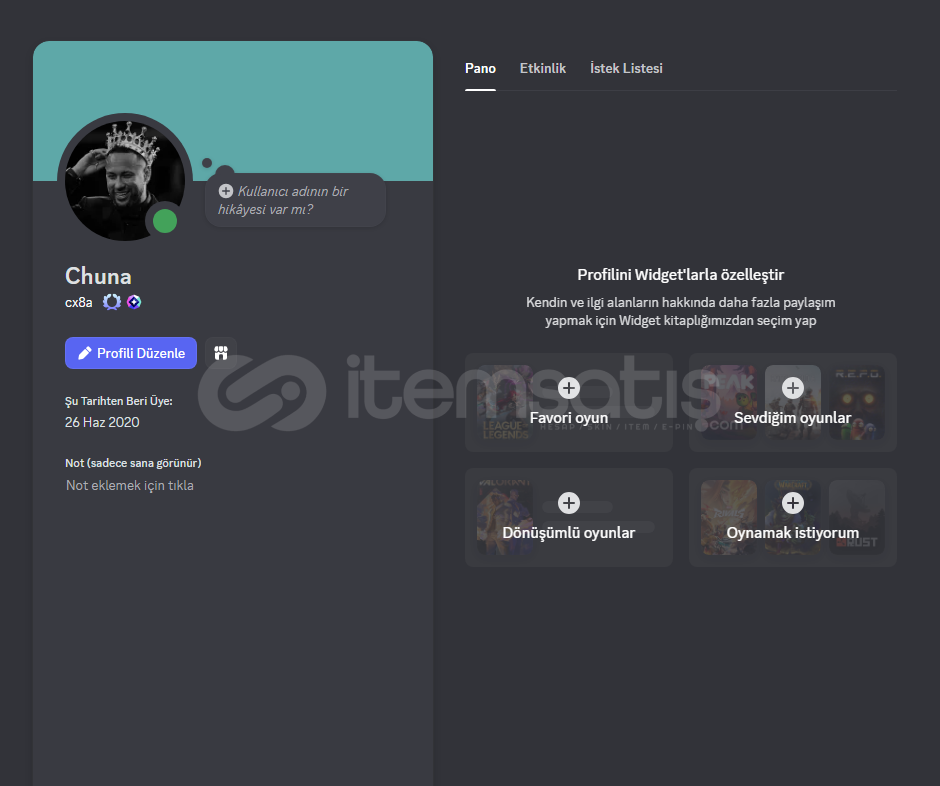 -> Hesapta Promosyon Nitro Kullanabilirsiniz Daha Önce Hesapta Nitro Alınmamıştır.