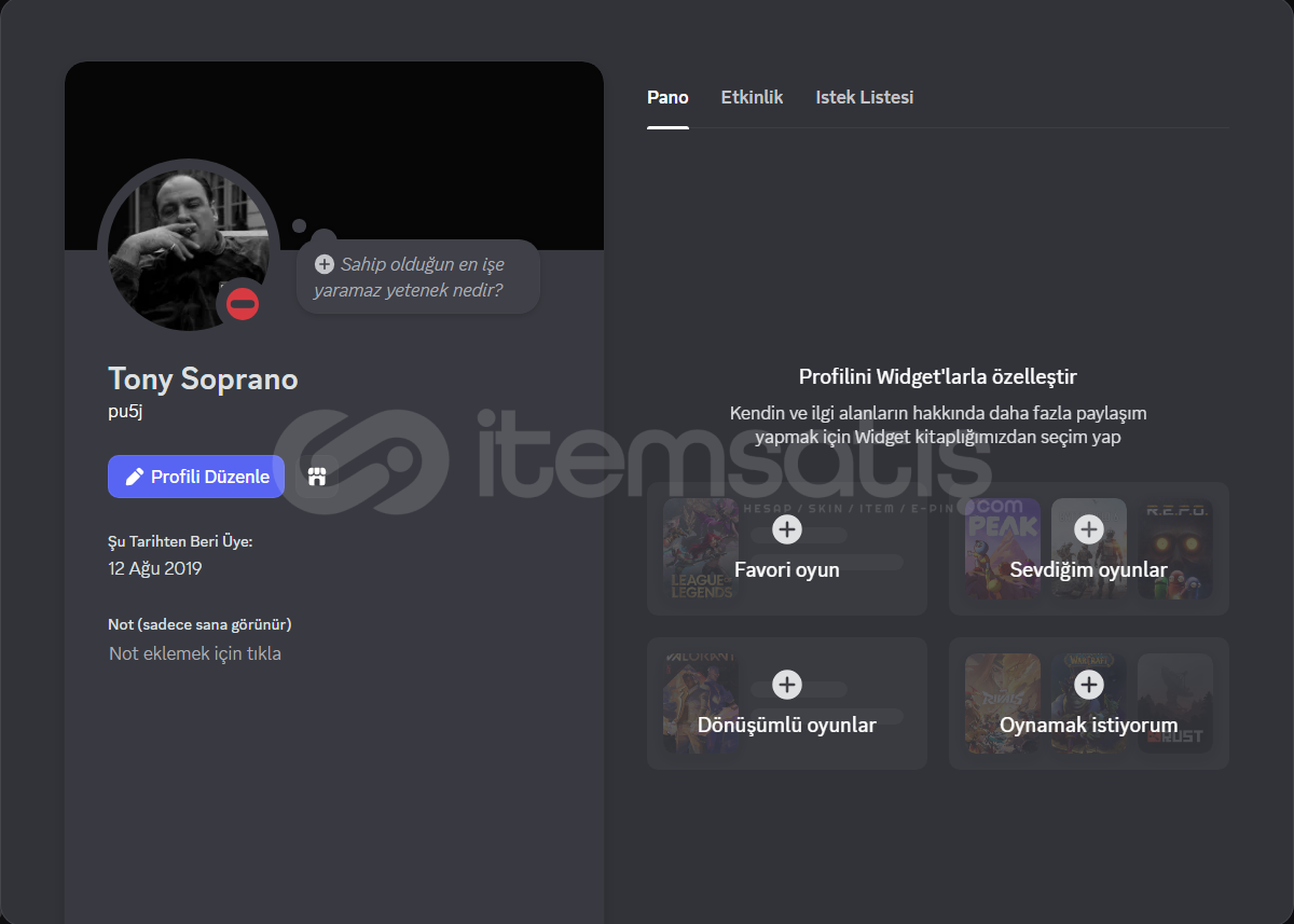 🟦Ürün Bilgileri:Satın aldığınız an hesap ve mail bilgileri sizlere otomatik iletilecektirHesap 2019 yılında kurulmuştur.Daha önce nitro alınmamıştır, promo kullanabilirsiniz.Şifre,Mail, Telefon gibi bilgilerinizi ekleyebilirsiniz.Satın alırken ve hesaba giriş yaparken herhangi bir sorun yaşanmaması için video kaydı almanız gerekmektedir.İlanı satın ald&...