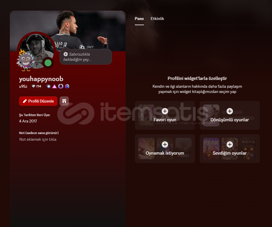 -> Hesapta Promosyon Nitro Kullanabilirsiniz Daha Önce Hesapta Nitro Alınmamıştır.