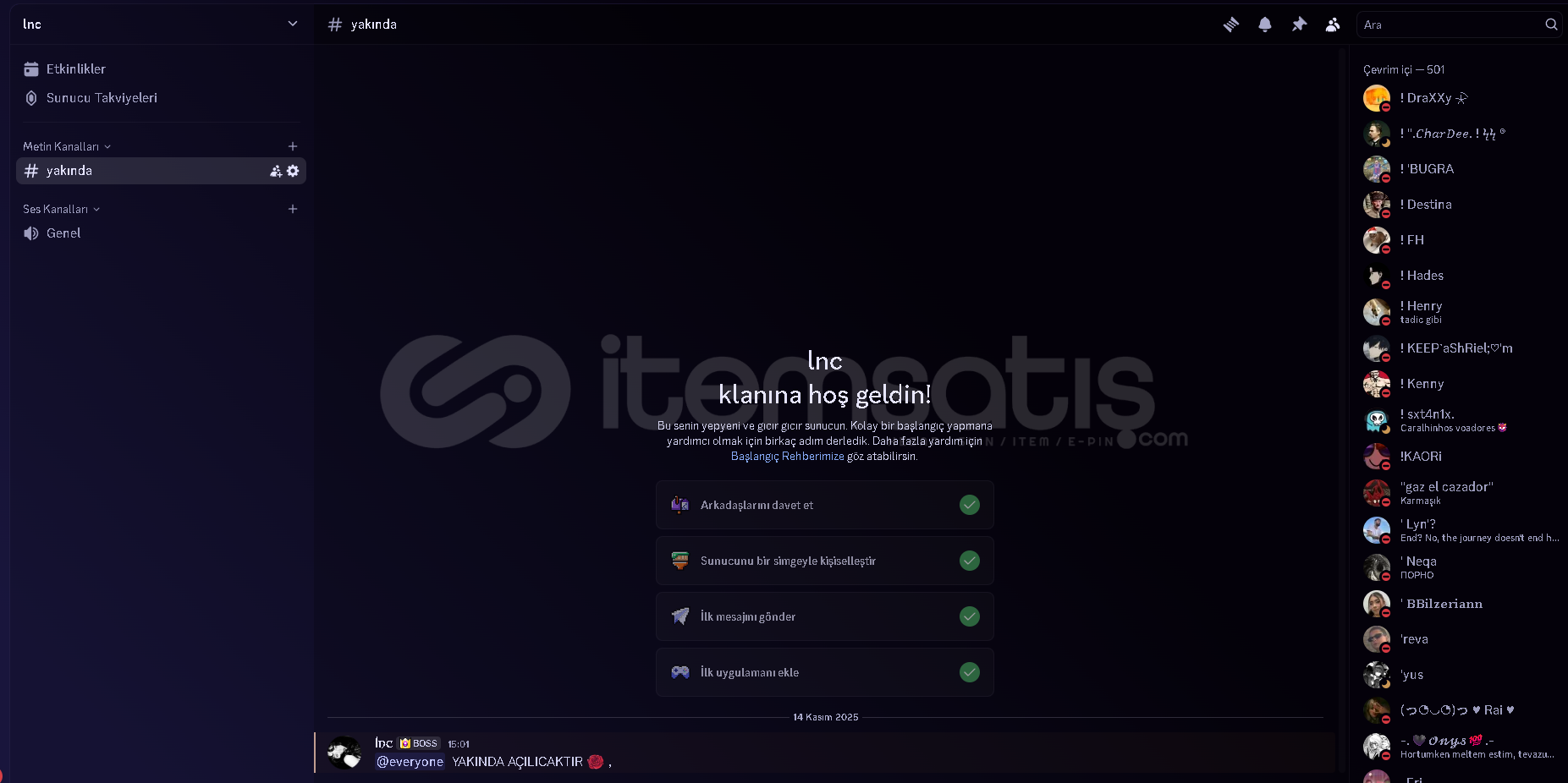 Sunucuda 500 Aktif Üye VardırHEPSİ TÜRKTÜRSatın Aldıktan sonra sunucu tacı size verilecektirÜyeler Aktifliğini SağlıyorSunucu boştur üyeler içerdedir siz oluşturursunuz TAÇ SİZE VERİLECEK