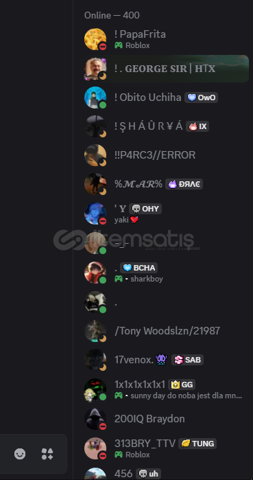 5600 Üyeli Yabancı Kitleli Aktif SunucuİNDİRİM OLUR, BÜTÇENİZ YETMEZSE BANA YAZA BİLİRSİNİZ ELİMDEN GELDİĞİ KADAR İNDİRİM YAPARIMsunucuya göz atmak için bana yaza bilirsiniz.ALDIĞINIZ ANA BANA DİSCORD İSMİNİZİ ATINIZ DİREKT SUNUCU SAHİPLİĞİ AKTARILICAKTIR