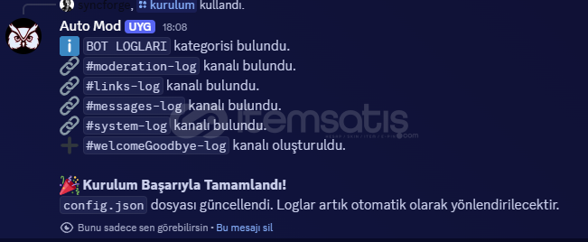 SYNC PROJECT V3: Discord sunucunuzun ihtiyacı olan nihai, profesyonel yönetim çözümüdür. Dağınık moderasyona son! 7 katmanlı eşsiz AutoMod sistemi (Anti-Caps, ZWS, Unicode Küfür, URL, Spam) ile tam koruma sağlar. Botumuz, 5 vuruşluk otomatik ceza mekanizmasıyla (Timeout) disiplini saniyeler içinde otomatize eder. Tek bir /kurulum komutuyla botunuzu hemen hazırlar, log kanallarını ve izinleri ayarlar. Bu üstün V3 altyapısının açık kaynak kodları tek bir ödeme ile sonsuza kadar size aittir. Geliştirici: syncforge.