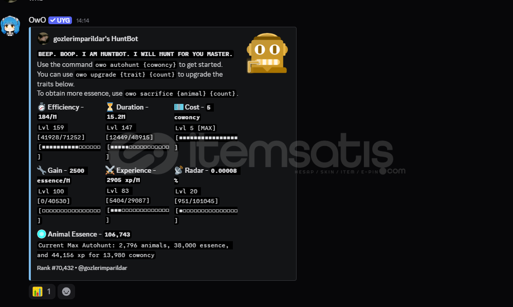 Görsellerdeki gibidir.Kullanıcı adı verilmeyecek,hesapta cash yoktur.Ban yeme riski vs yoktur el ile kasılmıştır