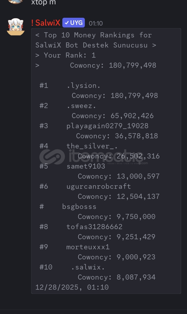 owo birebir top cash komutu bdfd dır Diğer kodlar icin profilimi kontrol edebilirsiniz