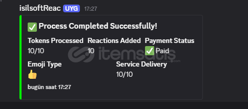 Botu eklediğiniz herhangi bir sunucudaki herhangi bir mesaja toplu tepki ekleyin1000 hakkınızı birden fazla mesajda veya tek bir mesajda dilediğiniz gibi kullanabilirsiniz.Aynı mesaja en fazla 800 emoji eklenebilir.Hangi Emojinin ekleneceğine siz karar verin !.Tamamen sistemimiz otomasyondur. 7/24 satın alıp kullanabilirsiniz. Yardıma ihtiyacınız olur ise bizlere her zaman ulaşabilirsiniz.