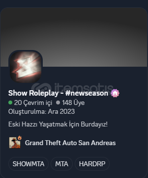 1 Haftada Oluşan Bir Proje Sonu Oldugu İçin Discordu Satacağız! Bundan Dolayı Discordu Satmaya Karar Verdik!Hızlı İletişim Sağlamak Adına : Zexdb14 Boostlu 3 ay 2 aydan fazla suresı var bilginiz olsunFotograflar Gece 4de cekilmiştirMTA PROJESINI ALMAK İÇİN ÖZEL İLAN ACILABİLİR!VDS ANLAŞMASI SINIRSIZ ANLAŞMA YAPILABİLİRSE EĞER YAPILMAZSA FİYAT DÜŞERL...