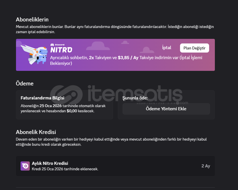 2 ay nitro boost kredisi vardır11 Ekim 2023 kurulumdurTiktok bağlantılar vardırHesap safe hesaptır yaklaşık 3 aydır tutuyorum herhangi bi ihlal durumu yoktur olası bir sorunda her türlü destek sağlanır