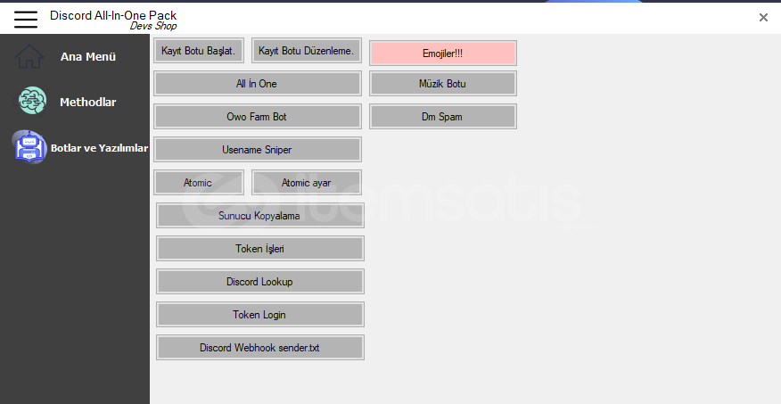 Artık .Exe dosyasıyla beraber daha hızlı, çabuk ve kolay kullanım!Mükemmel menü ve yeni özellikler:100+ Emoji / GifRaid Tool!DM SpamMüzik botu Özel indirim fırsatını kaçırmayın! Stoklarımız tükenmeden şimdi satın alın. Bizi tercih ettiğiniz için teşekkür ederiz. Paket İçeriği(Tüm içerik listelenmemiştir.) OwO...