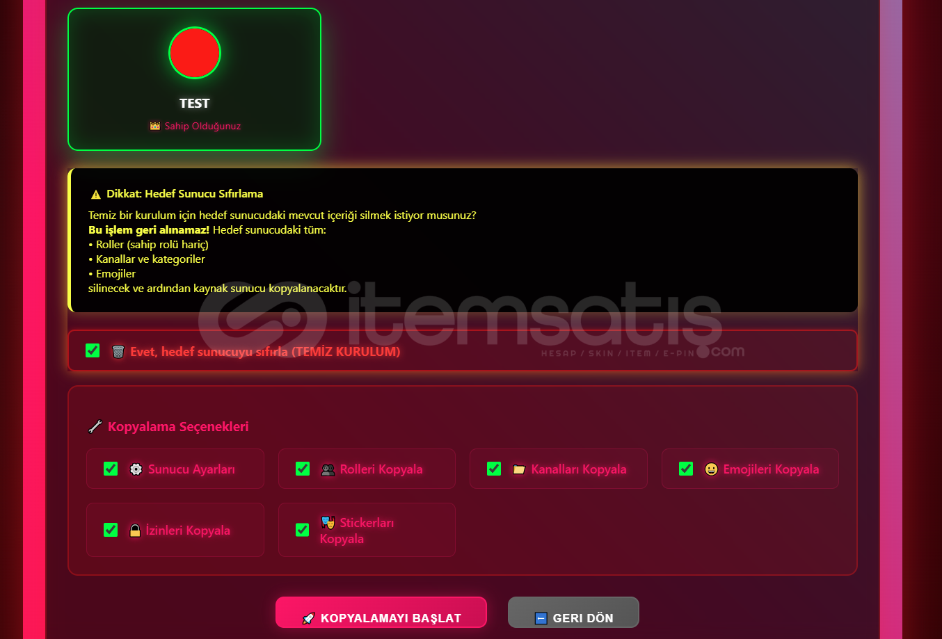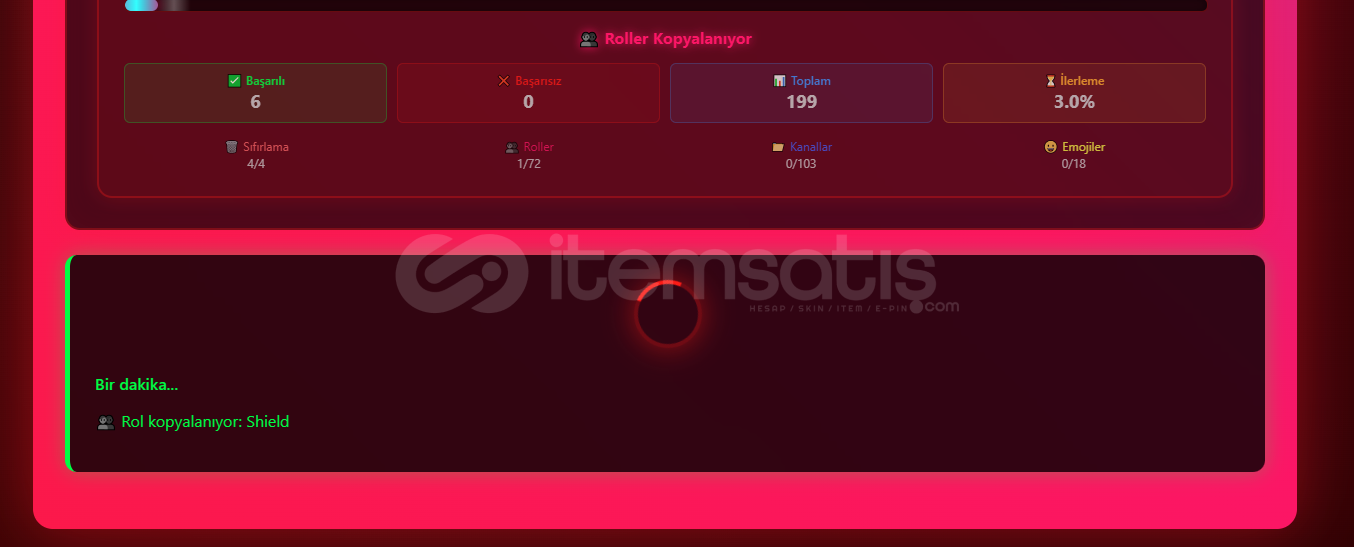 ✨ Sunucu rolleri, Kanallar-Kategoriler-Roller ve İzinleri. Stickerler-Emojiler, Rol sıraları ve Tüm izinler eksiksiz kopyalanır.