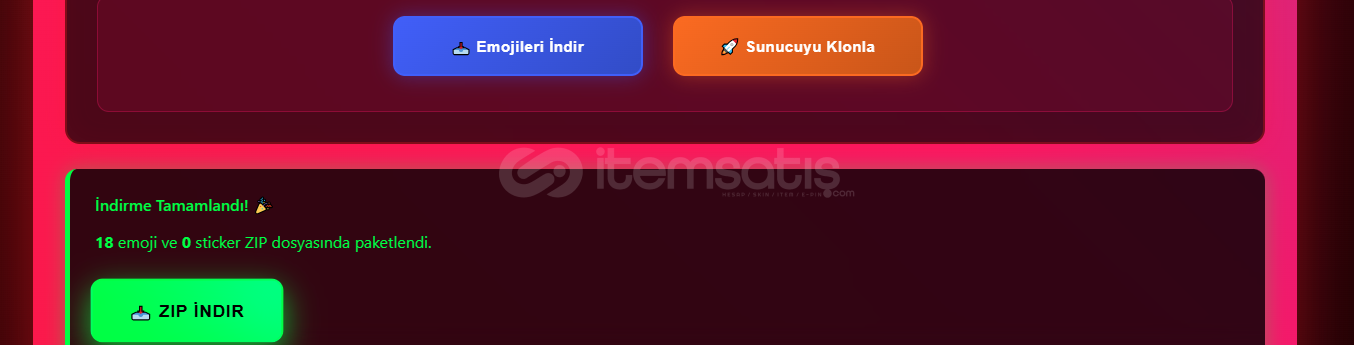 > Biz Sizlere sadece bir kod parçası değil, piyasadaki EN ÜST SEGMENT Discord Sticker-Emoji İndirici ve Sunucu Kopyalama Programını Sunuyoruz.