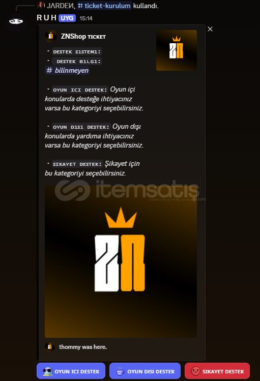 İÇİNDE OLANLARGenel TicketYetkili Başvuru TicketEkip Alım TİcketKurulumu kendi içerisindeki README Adlı klasörde mevcuttur, Sanal Ürün Olduğu İçin İade Kabul Edilmemektedir