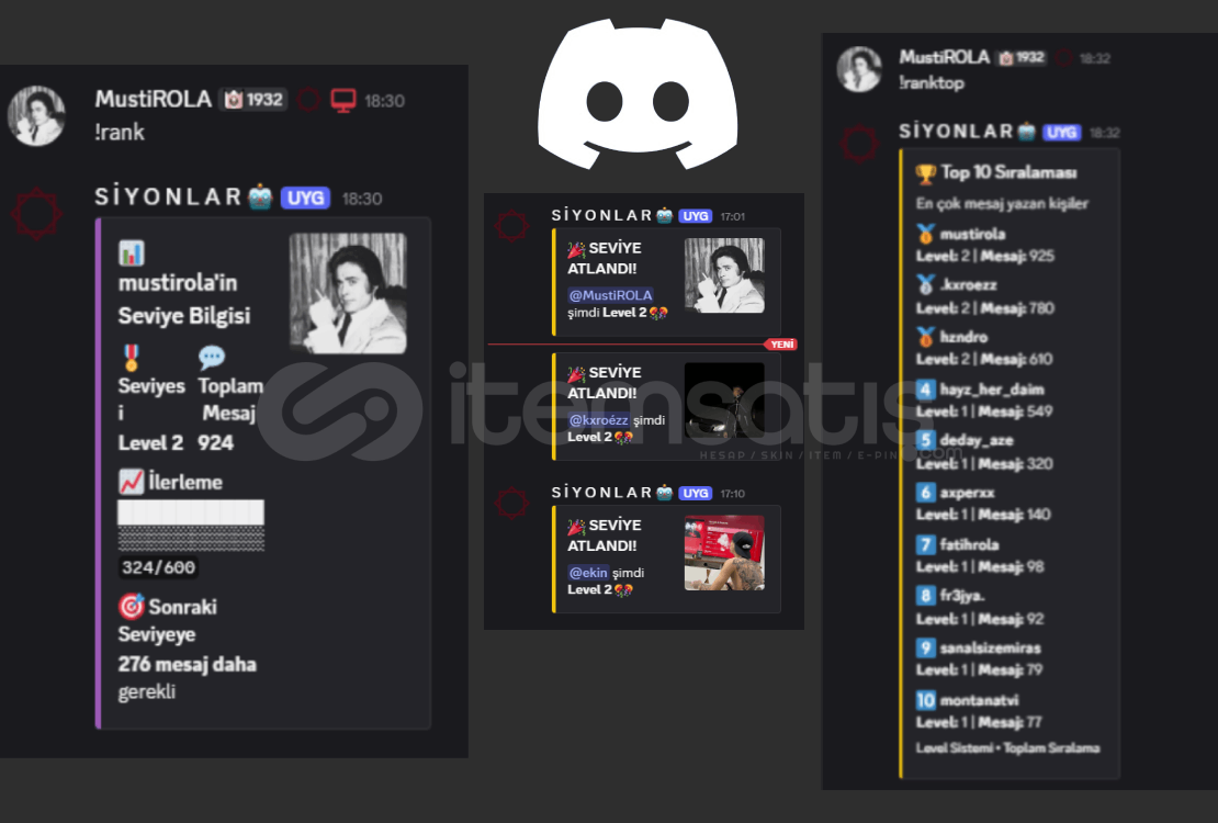 ⭐DİSCORD GELİŞMİŞ LEVEL BOTU ALT YAPISI⭐Ürün ömür boyu garantilidir!Level sistemine kaç tane rol entegre edecekseniz idlerini atmanız lazımdır!Sistem detaylı ve embedlidir!Toplam kaç mesaj yazdığınız görünür!!rank ve !ranktop komutu eklenir!!rank ile levelinizi görebilirsiniz.!ranktop ile sunucudaki üyelerin en fazla level kasmış ilk 10'unu göre...