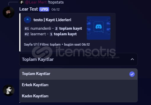 • İstatistikler: !kayıtlarım komutuyla kendi kayıt istatistiklerinizi görüntüleyin, !topkayıt ile ise sunucudaki en çok kayıt yapan yetkilileri keşfedin.