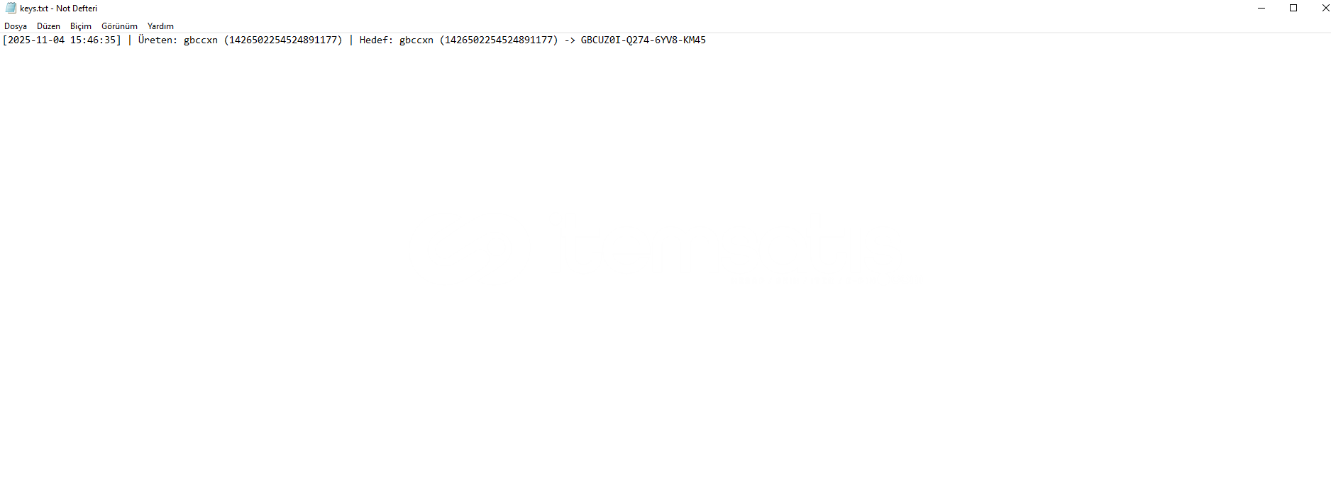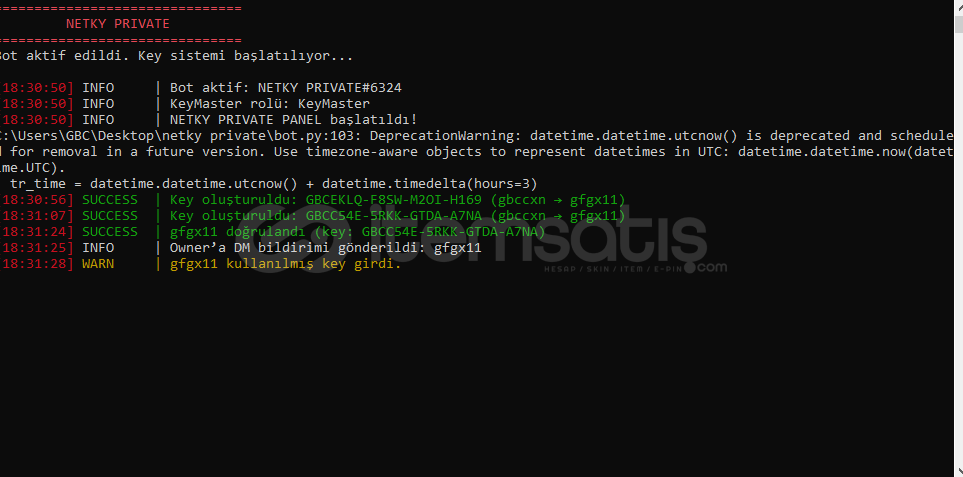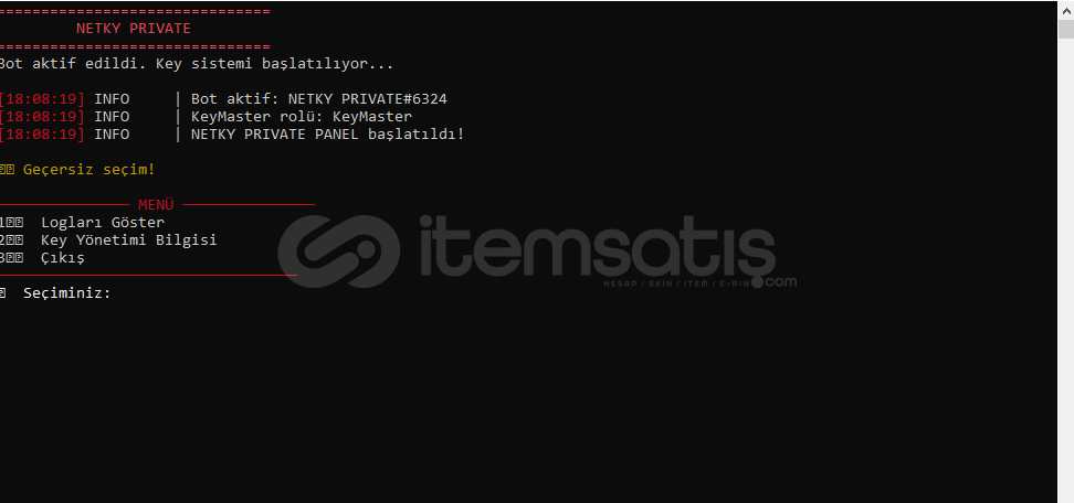 Merhaba bu bot size özel yapılır menü istediğiniz renkte istediğiniz şekilde tasarlanır bütün yazıları herşeyi değiştirebilirim botda keyi 1kişi kullanma hw1d sistemi var 1keyi sadece 1kişi kullabilir istediğiniz şekilde key eklenir mesela atıyorum keyin önüne Netky eklemek isterseniz buda eklenir key kullanılırsa size dmden ve kloserdeki txt dosyasından bildirir dmden ve ...