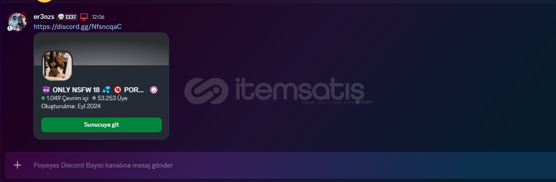 Sunucu limitli olduğu için giriş sağlanamıyor. Limiti 21 ekimde bitecek bitince kullanabilirsiniz.Bu sebepten dolayı ucuza bırakıyorum.Hepsi gerçek üyelerden oluşmakta. NSFW KitleLimiti geçince kullanabileceğiniz +28 takviyeli sunucu.Limitinden dolayı giriş sağlanamadığı için tac hesabıyla birlikte verilecek limiti bittiğinde istediğiniz gibi kullanabilirsiniz.İndirim o...