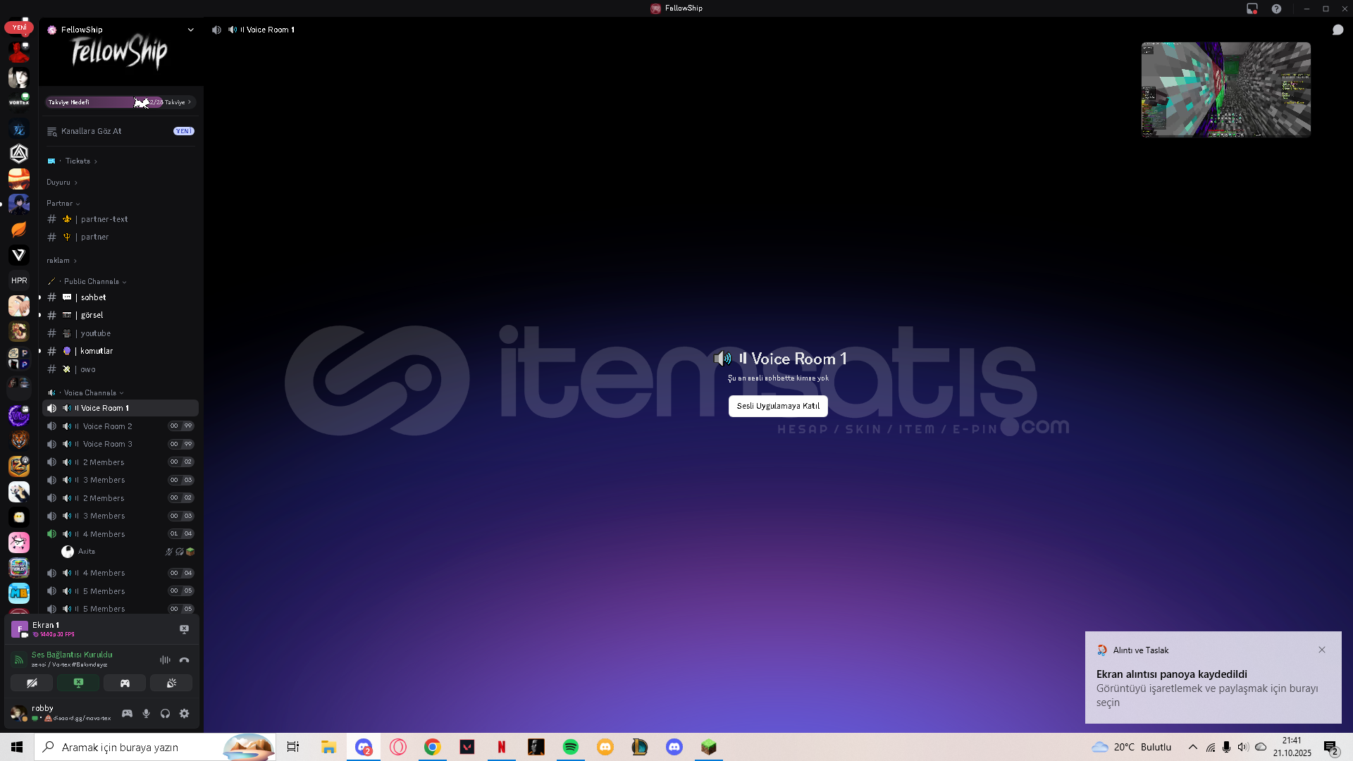 Selam, bu ilanımda Discord Sunucu kopyalama yapıyorum istediginiz bi sunucuyu istediginiz bi sunucu kopyalattırma rolleriyle ayarlarıyla! (kanal mesajıları gelmiyecektir botları kendiniz ekleyeceksiniz) nasıl yapıldıgını anlatıcam link için satın alın!