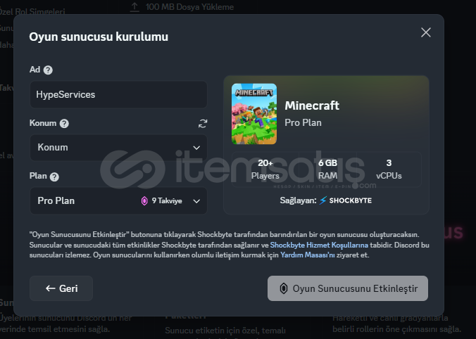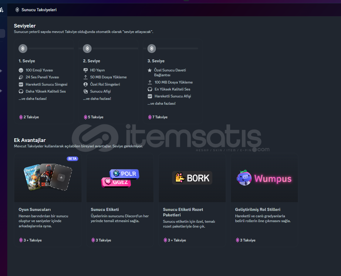 • Oyun sunucusunu açarken sistem özelliklerini boost ile arttırabilirsiniz, bunlar 1. 2. 3. seviyeye dahil değildir.