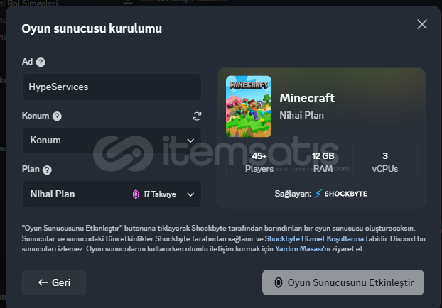 • Sunucu boş (üye ve boost bulunmamaktadır) ve sadece özellik ile birlikte teslim edilecektir.