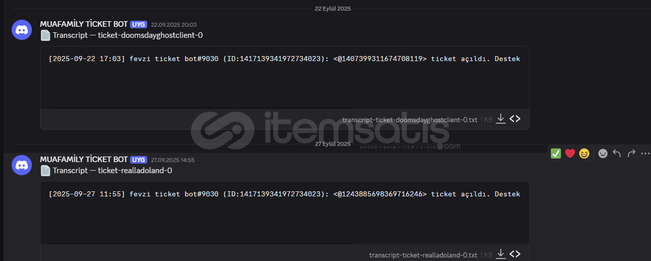 DİSCORD TİCKET BOT LOGLU (İSTEKLER EKLENİR)