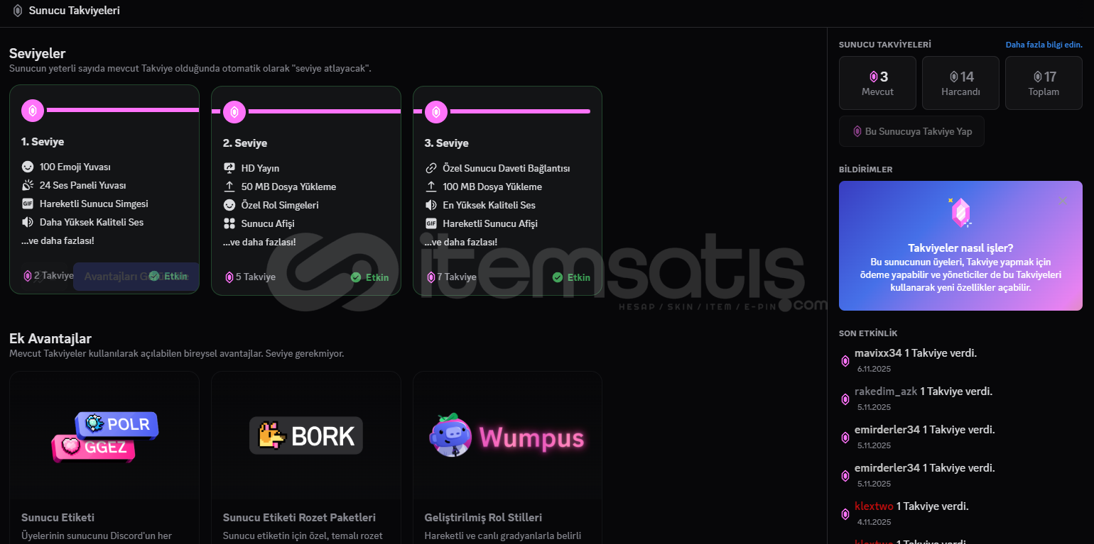 Boost/nitro/owo cash veya üye alışlarınızda yazacağınız sunucu bağlantınızı ya da kullanıcı adınızı kontrol ederek siparişi tamamlayınız. Aksi taktirde oluşabilecek sorunlarda tüm sorumluluk sizlere aittir.