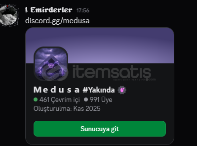 discord.gg/medusa bilindik degerli bir url dc sw ile verilcek 17 bosst 1 k uye v.b cidi almayı düşünürseniz indirim yaparız