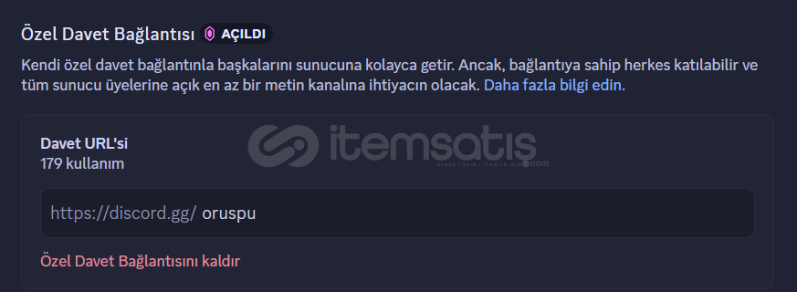 discord.gg/oruspu Oldukca değerli bir urldir oldukca ucuz bir fiyata koydum kaçırmayın derimtaç ile beraber verilicektirSunucunun boostu 1 aylıktır boost yeni çekildiurl yeni çekildi
