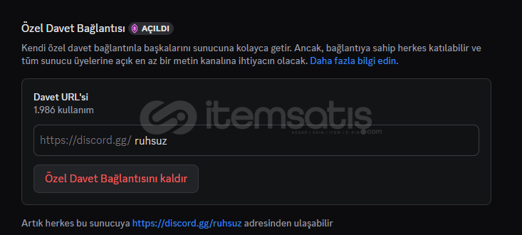 Boost/nitro/owo cash veya üye alışlarınızda yazacağınız sunucu bağlantınızı ya da kullanıcı adınızı kontrol ederek siparişi tamamlayınız. Aksi taktirde oluşabilecek sorunlarda tüm sorumluluk sizlere aittir.