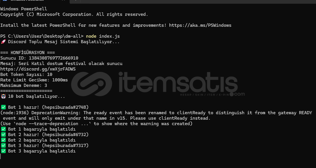 Bu bot çoklu token ile çalışmaktadır yani rate limit sorunu yaşamazsınız. Toplu gönderimlerde çok işinize yarar. Asla rate limit olayında sorun yaşamazsınız.Altyapısı ile birlikte teslim edilir.
