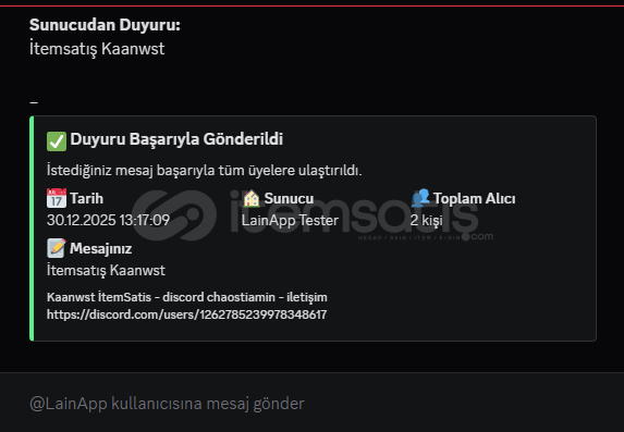Komutu kullanan kullanıcıya, mesaj gönderiminden sonra bildiri mesajı gönderir.