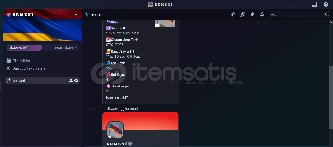 .gg/ermeni URL Lİ, 1000 ÜYELİ, 14x BOOSTLU SUNUCU / TAÇ DEVİR