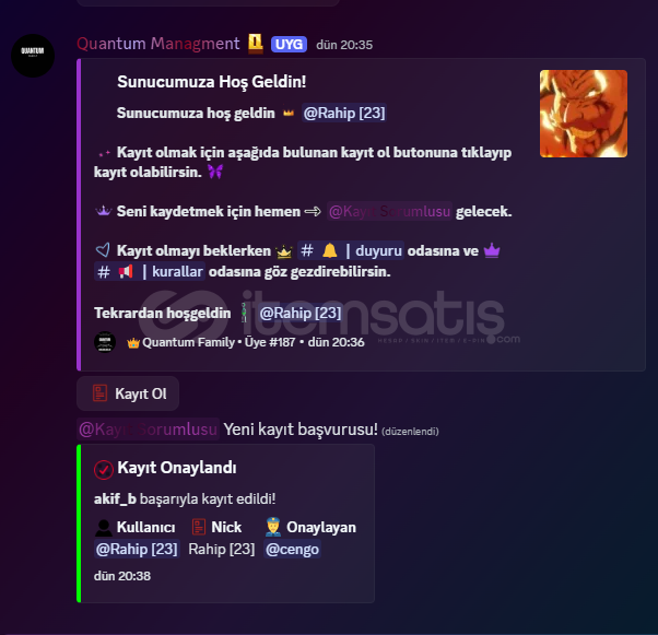 Moderasyon, müzik, ekonomi, seviye, kayıt, oyun vb. her türlü sistem