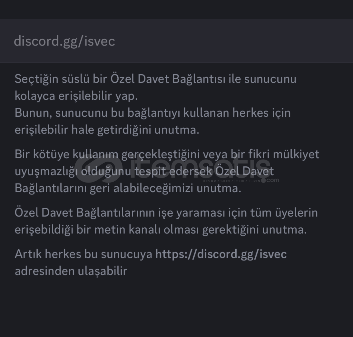 Boost/nitro/owo cash veya üye alışlarınızda yazacağınız sunucu bağlantınızı ya da kullanıcı adınızı kontrol ederek siparişi tamamlayınız. Aksi taktirde oluşabilecek sorunlarda tüm sorumluluk sizlere aittir.