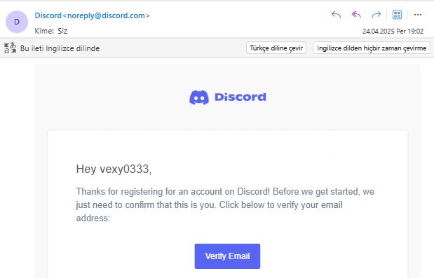 DISCORD'A KAYIT OLURKENKİ KULLANILAN MAIL VERİLECEKTİR