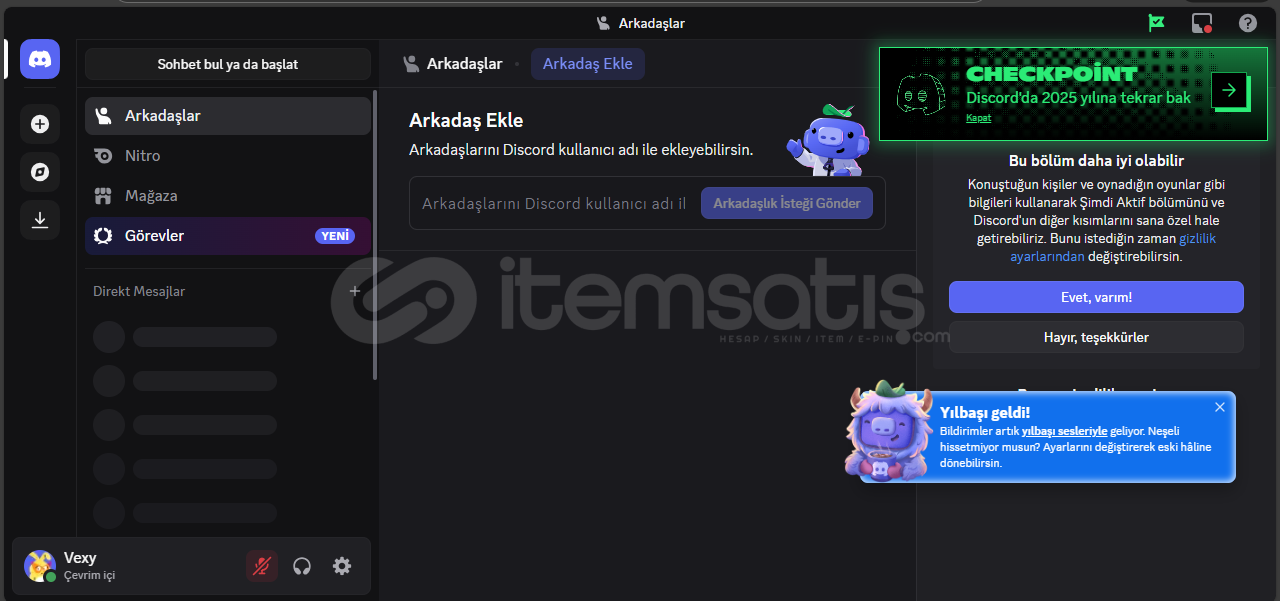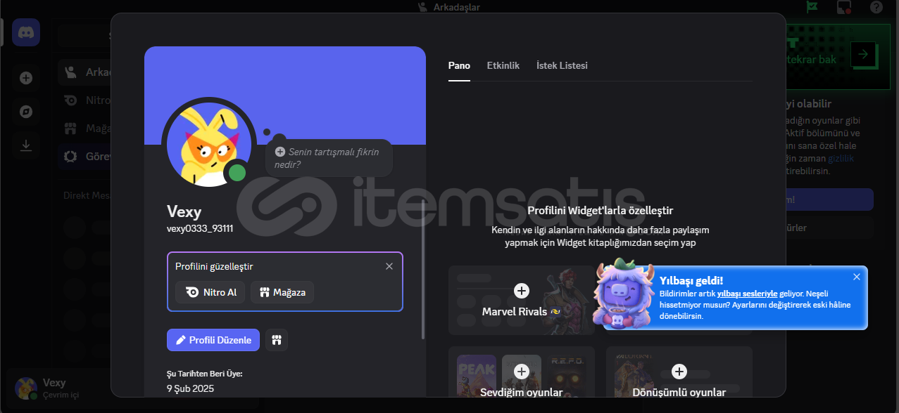 DISCORD'A KAYIT OLURKENKİ KULLANILAN MAIL VERİLECEKTİRHESAP TAMAMEN TERTEMİZDİR, HİÇBİR SUNUCUYA KATILMAMIŞTIR, HİÇBİR ARKADAŞI YOKTURHİÇBİR KISITLAMASI BANI VB YOKTURÖMÜRLÜK TÜRK HESABIDIRBEN AKTİF DEĞİLKEN BİLE SATIN ALABİLİRSİNİZ - OTOMATİK ANINDA TESLİMAT