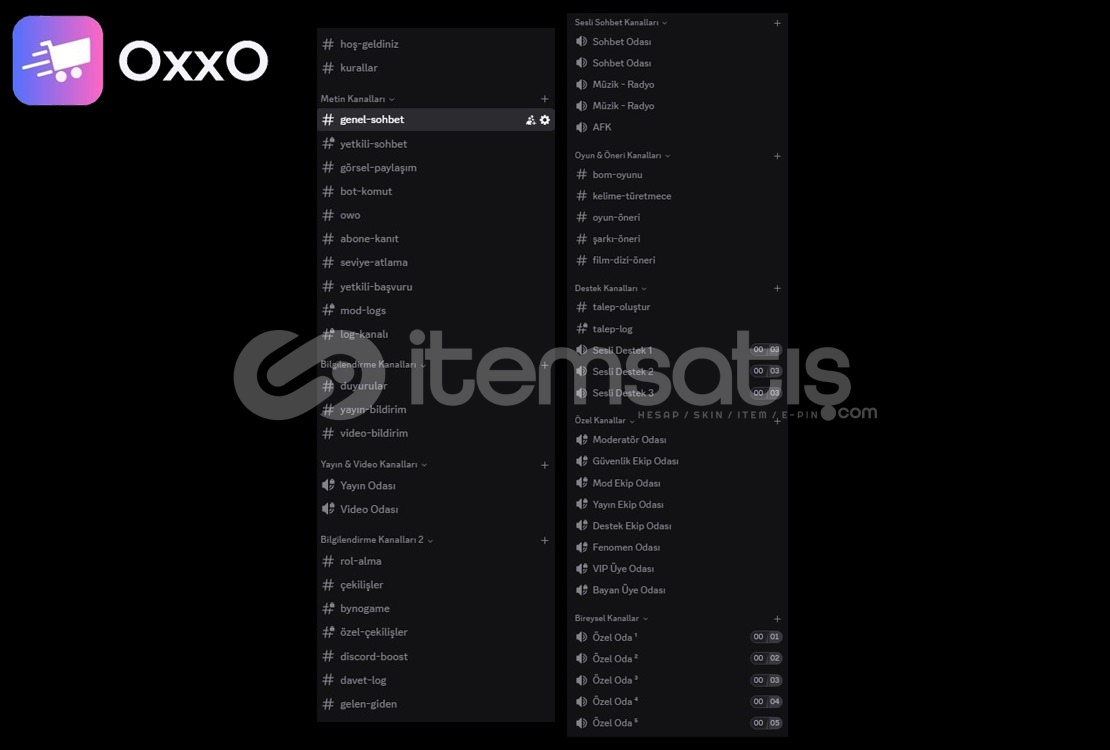 Resimde gösterildiği gibi bir sunucudur.İlanı satın aldığınız zaman otomatik teslim edilir.Kanallar ve Rollerin Ayarlamaları Yapılmıştır.Keyifli Alışverişler Dilerim.══════════════ ⋆★⋆ ══════════════★ NEDEN BİZ...