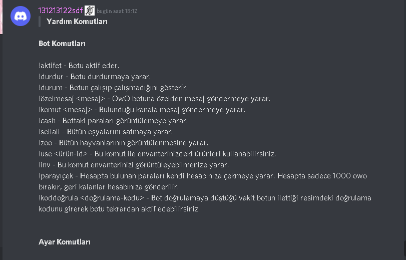 • Profilimdeki botların açıklamasından bir şey anlamadıysanız mesaj bölümünden çekinmeden yazabilirsiniz.