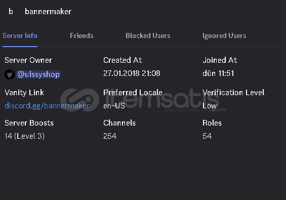 Taç devir yapılcaktır.Sunucuda 14x boost bulunmakta BANNERMAKER urlsi çekilmiş hazırdadır.Sunucu kurulum tarihi 2018dir. sunucuda kanallar roller temizlenerek istenilen tarzda sunucu yapılcak şekilde teslim edilir.