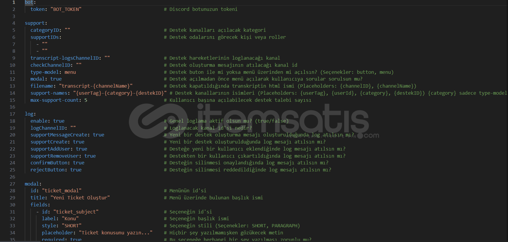 • Tüm embedler, mesajlar, butonlar, menüler config.yml üzerinden değiştirilebilir