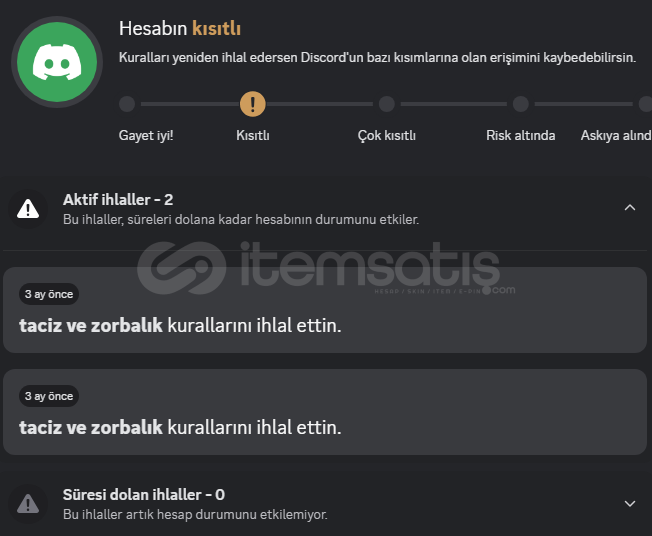OG'si silindi zaten pb yani hesabı geri çekme olayı discorddan kalktı.2 Adet uyarısı var 2026'da kalkacak. [ Hesabı kullanmanızda sorun cıkarmaz ]Yuji Ijitori Bundle Profil Seti Var.Fiyatta indirim düşünmüyorum uyarısından dolayı güzel fiyat yazdım.Her türlü soru, sorun, vb. durumlar için gelip yazabilirsiniz