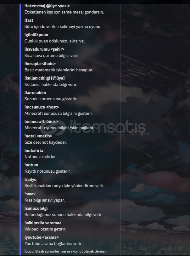 not: botu aldığınızda lisansı size özel dm yolu ile verilecektir satın aldığınıza dair bir ss alın aksi takdirde satıl aldığınızı doğrulayamazsınız