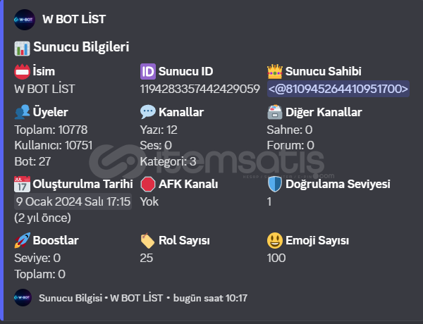 Sunucu Bilgisi • W BOT LİST•bugün saat 10:1