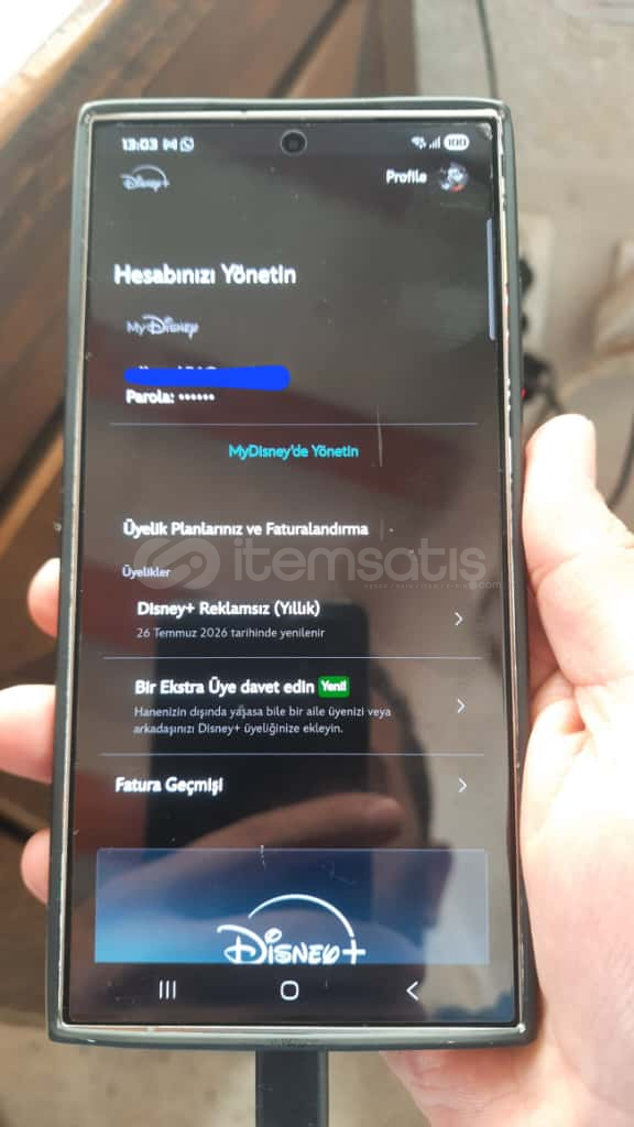 26 TEMMUZ 2026 'ya kadar AKTİF DİSNEY PLUS HESABI.REKLAMSIZDIR.PROFİL EKLENEBİLİR.DETAY İÇİN YAZABİLİRSİNİZ