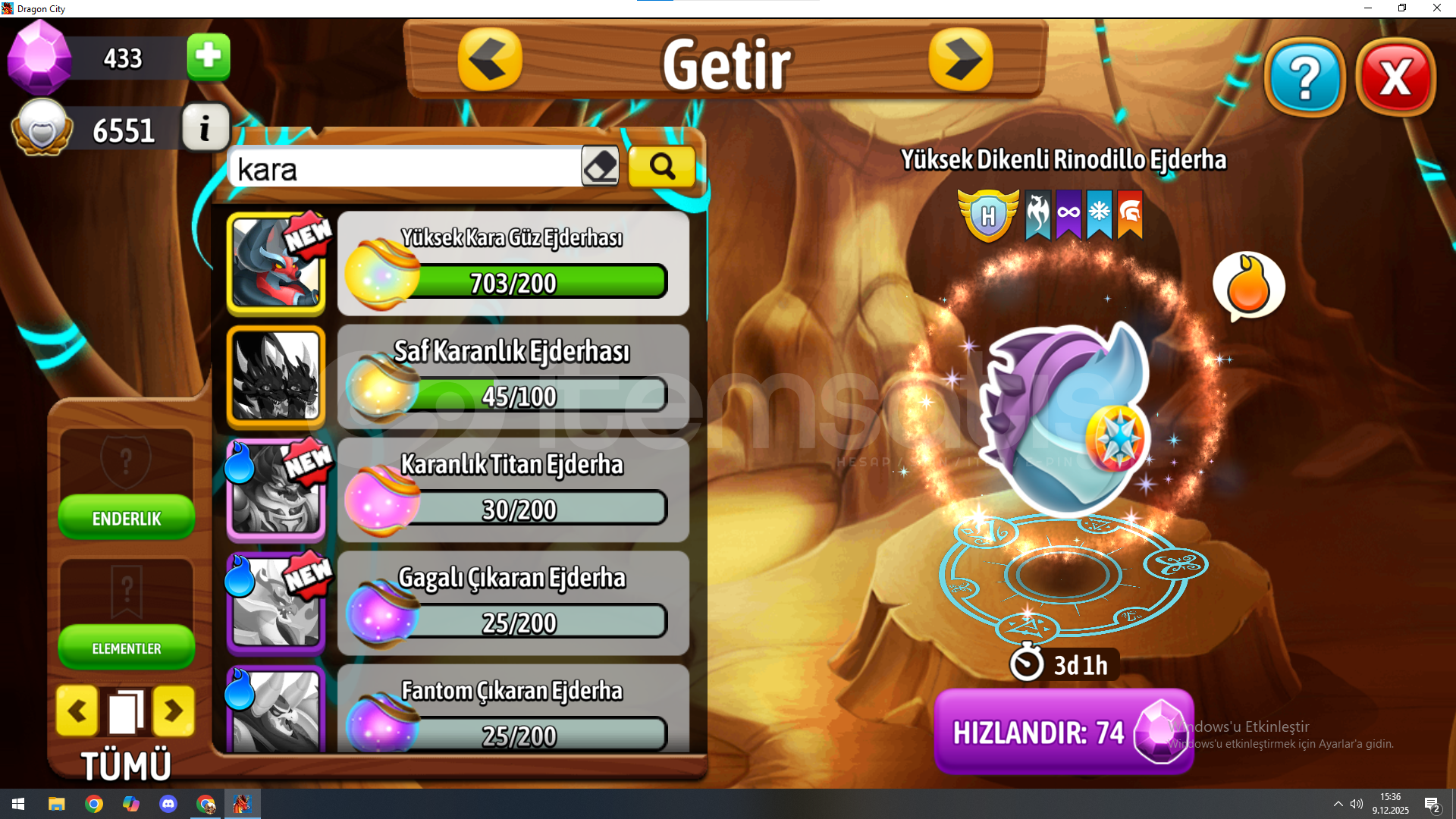 Dragon city Yüksek güz ejderhası (200tane küre)